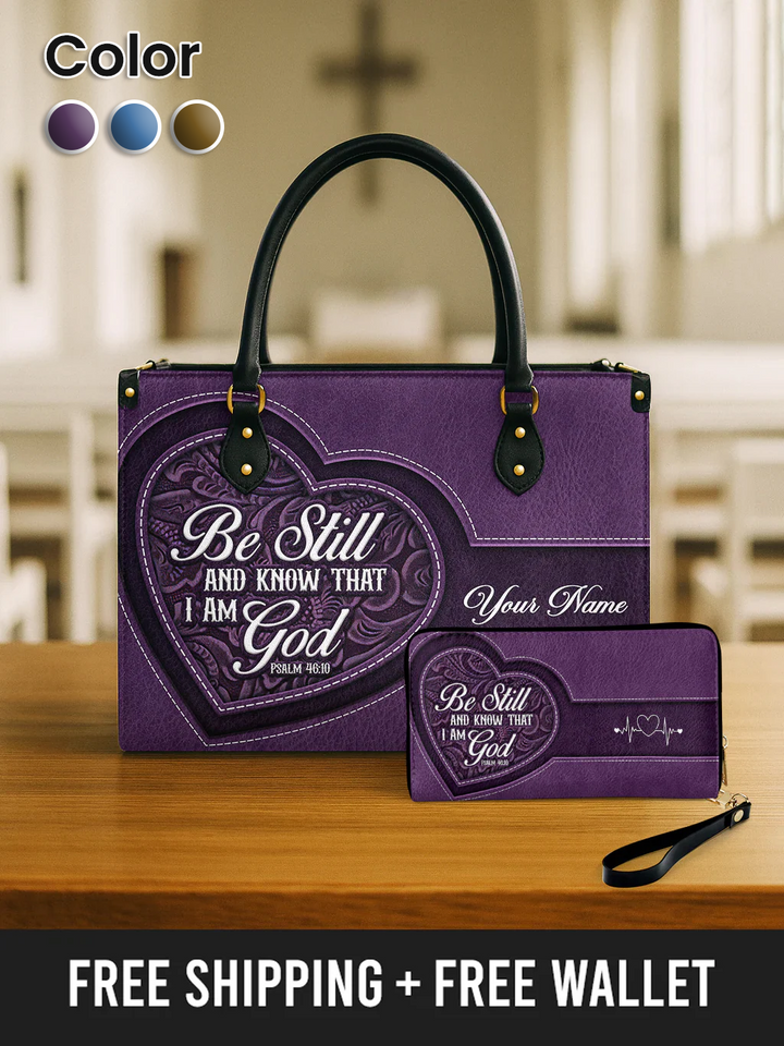 The Stillness & Faith carries the comforting promise from Psalm 46:10: “Be still, and know that I am God.” With its elegant purple design and heart motif, this handbag is more than a style statement—it is a gentle reminder to rest in God’s presence, to find peace in His sovereignty, and to walk daily with a calm and trusting heart. Perfect for women of faith who value both beauty and meaning.