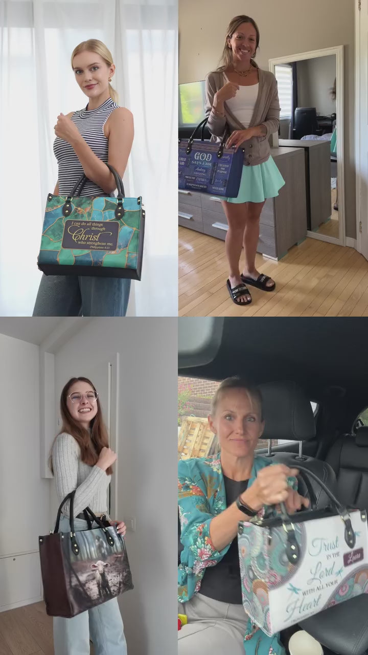 The Be Still Psalm 46:10 Handbag is a timeless reminder of God’s sovereignty: “Be still and know that I am God.” With elegant wood-carved patterns and delicate butterflies, this handbag reflects peace, trust, and divine assurance. More than an accessory, it inspires you to rest in His presence and walk each day with calm faith and confidence in His love.