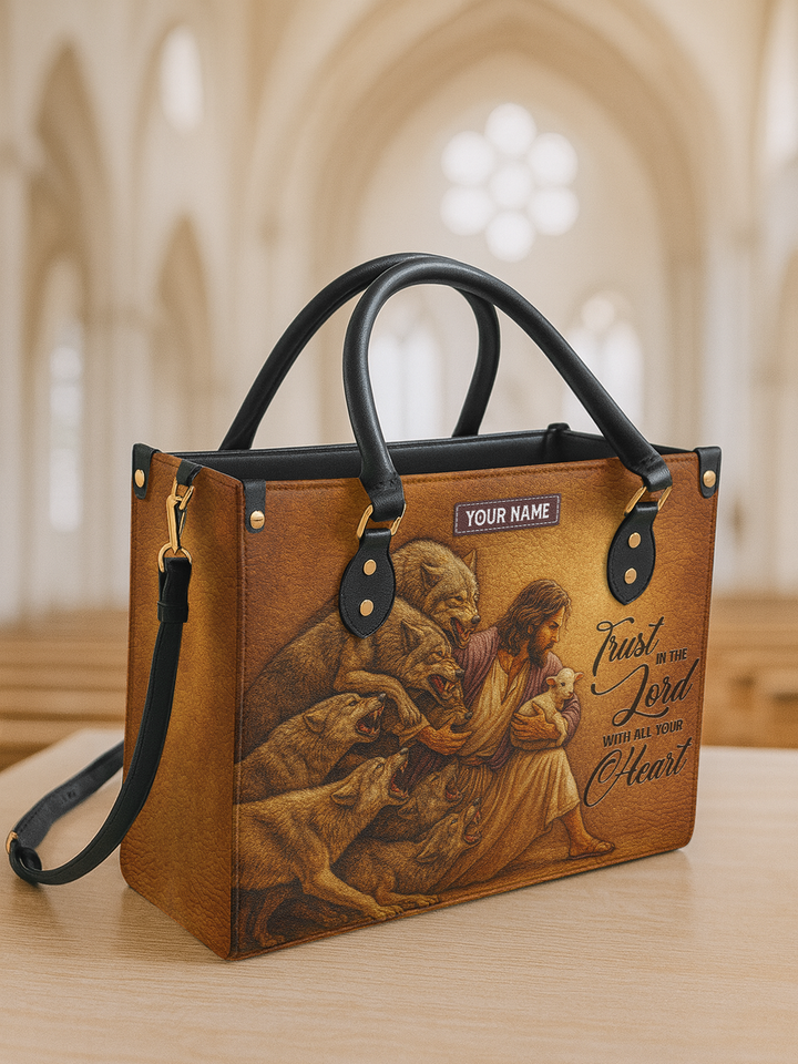 Honor faith and freedom with the One Nation Under God Leather Handbag. Featuring the American flag waving beside the cross and the image of Christ crowned with thorns, this design powerfully declares the message: “One Nation Under God.” Crafted from premium leather with a bold patriotic and spiritual theme, this handbag is both a symbol of devotion and unity. Perfect for daily wear, worship gatherings, or as a meaningful gift for those who hold both faith and country close to their hearts.
