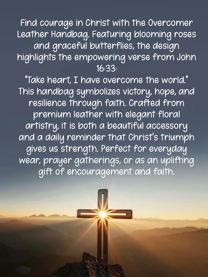 This handbag symbolizes victory, hope, and resilience through faith. Crafted from premium leather with elegant floral artistry, it is both a beautiful accessory and a daily reminder that Christ’s triumph gives us strength. Perfect for everyday wear, prayer gatherings, or as an uplifting gift of encouragement and faith.