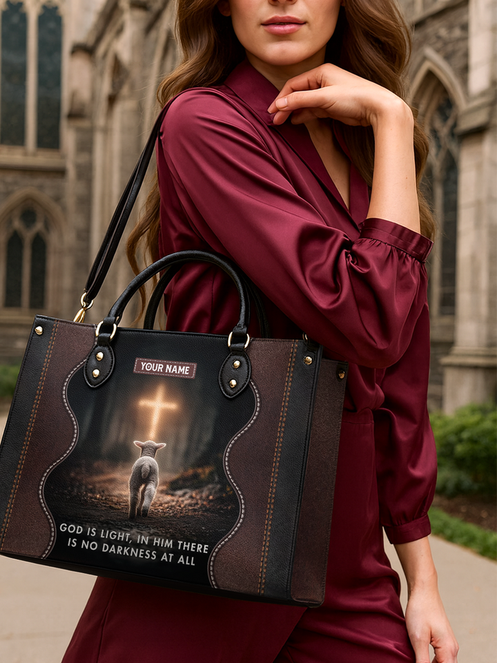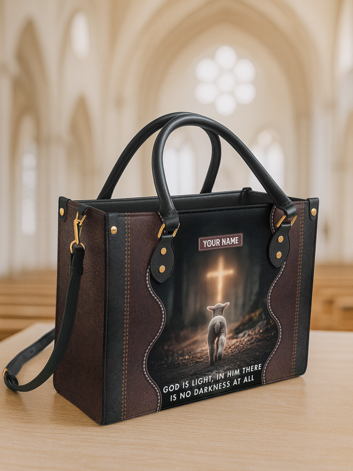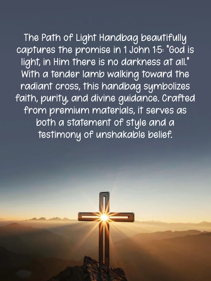 The Path of Light Handbag beautifully captures the promise in 1 John 1:5: “God is light, in Him there is no darkness at all.” With a tender lamb walking toward the radiant cross, this handbag symbolizes faith, purity, and divine guidance. Crafted from premium materials, it serves as both a statement of style and a testimony of unshakable belief.
