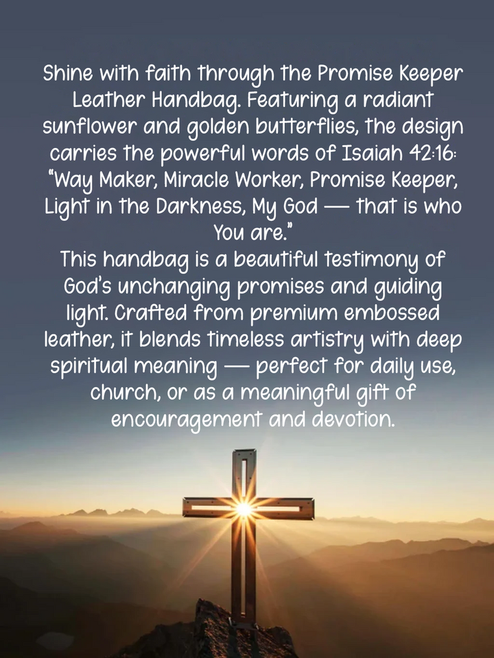This handbag is a beautiful testimony of God’s unchanging promises and guiding light. Crafted from premium embossed leather, it blends timeless artistry with deep spiritual meaning — perfect for daily use, church, or as a meaningful gift of encouragement and devotion.