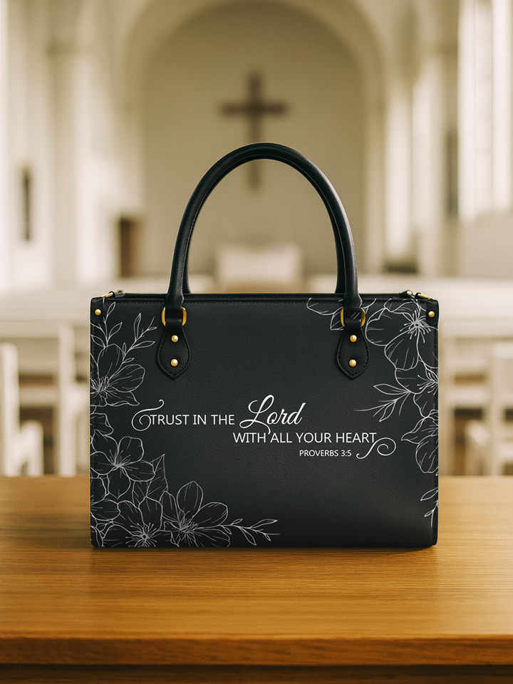 The Faithful Bloom Handbag carries a timeless message of faith: “Trust in the Lord with all your heart.” With its minimalist floral design and elegant neutral tones, this handbag reflects simplicity, peace, and devotion. Perfect for women of faith who cherish quiet strength and want to carry God’s Word gracefully in daily life.